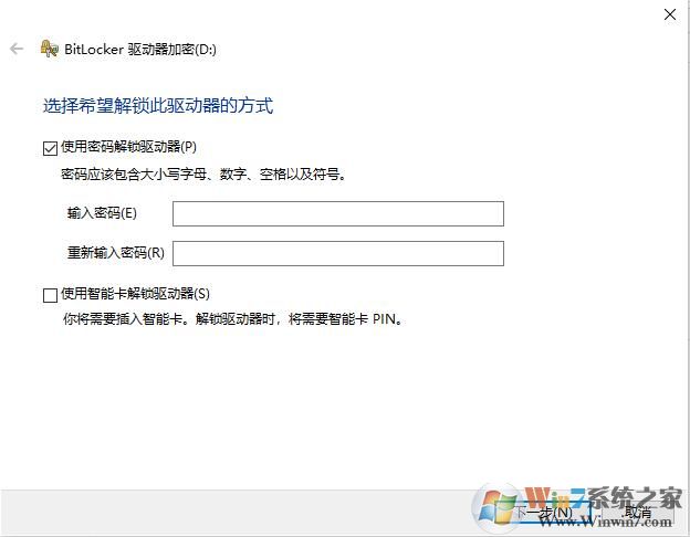 2、然后我們選擇解密的方式,一般小編推薦使用密碼來解鎖驅(qū)動器;