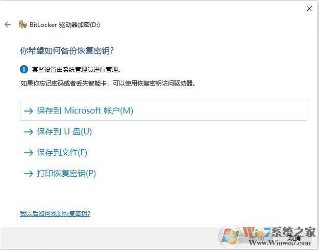 3、接下來就是需要選擇怎么退潮甩恢復密鑰;(如果你密碼忘記了可以命名用恢復密鑰來解鎖,小編先選擇保存到文件);