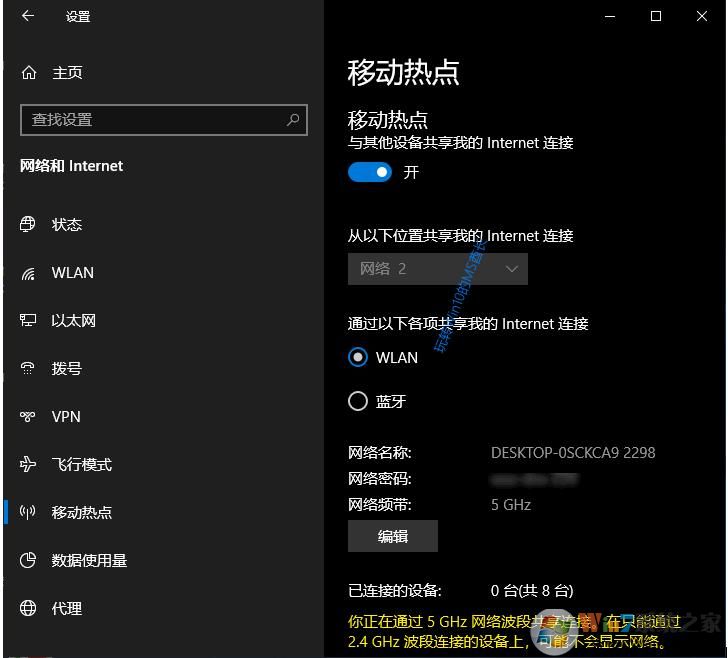 你正在通過 5 GHz 網(wǎng)絡(luò)波段共享連接。在只能通過 2.4 GHz 波段連接的設(shè)備上,可能不會(huì)顯示網(wǎng)絡(luò)。