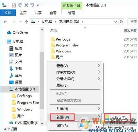 1、首先打開此電腦中的一個盤符,然后在空白處點擊右鍵,在彈出菜單中選擇“新建/文件夾”菜單項,建立一個新的文件夾;