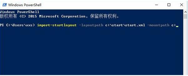 5、如果需要恢復(fù)開始菜單布局的話,只需要再次打開Windows Powershell命令行窗口,然后輸入命令import-startlayout -layoutpath c:\start\start.xml -mountpath c: ,按下回車鍵后就可以恢復(fù)Win10開始菜單布局了