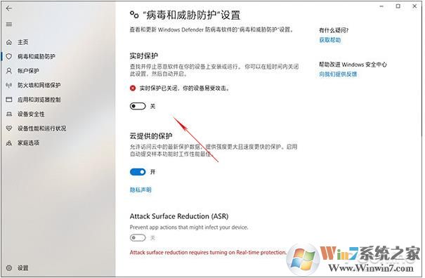 2、點(diǎn)擊“主頁(yè)”→“病毒和威脅防護(hù)”,關(guān)閉“實(shí)時(shí)保護(hù)”;