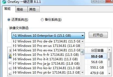 1、打開Onekey然后點擊打開,選擇ISO鏡像(原版或GHOST系統(tǒng)都可以),如下圖,小編選擇的是windows10多系統(tǒng)鏡像合集,工具精確的識別了所有系統(tǒng);