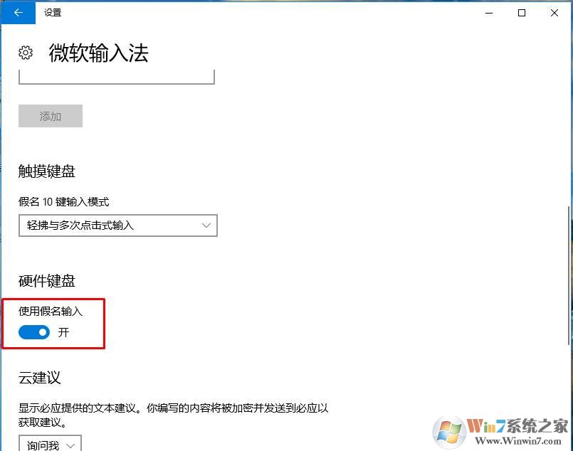 7、接下來我們看到下面,打開“使用假名輸入”