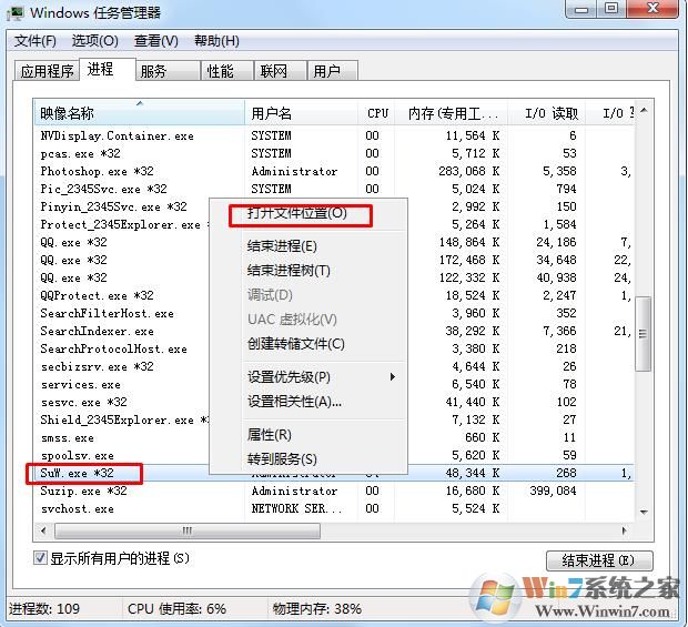 3、右鍵點擊Suw.exe *32 打開文件位置,如下圖;Win7系統(tǒng)之家 cncxm.com