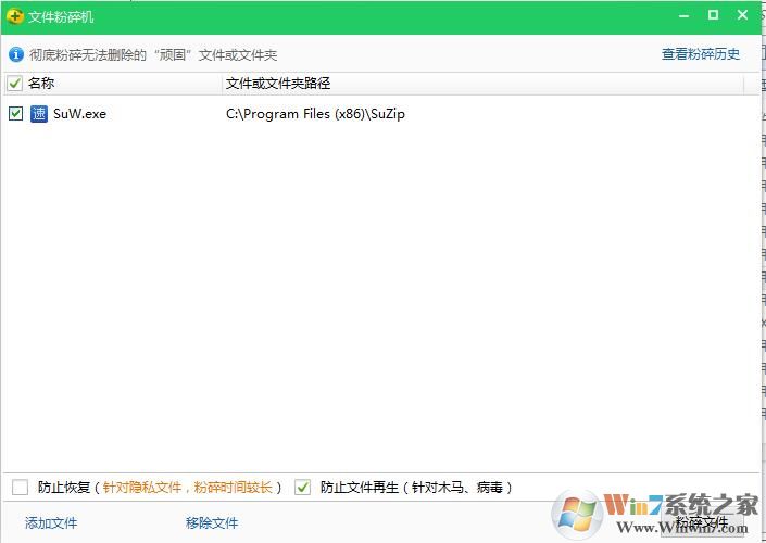 5、勾選防止再生,然后點擊粉碎文件,即可。
