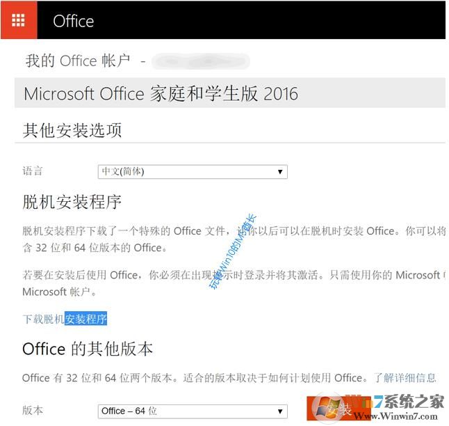 4、繼續(xù)點(diǎn)擊“其他安裝選項”進(jìn)入如下圖所示界面,我們就可以看到,下載脫機(jī)安裝程序,然后在版本處可以選擇64位;