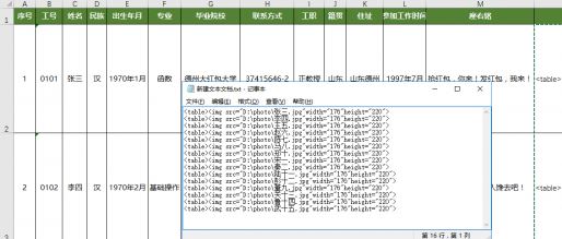 利用公式,在員工檔案信息表N2單元格輸入公式“="”,向下拖動(dòng)填充到相應(yīng)單元格。接下來(lái),選中圖片列公式內(nèi)容(從N2開(kāi)始),復(fù)制,返回桌面,新建一個(gè)文本文件,并打開(kāi),粘貼