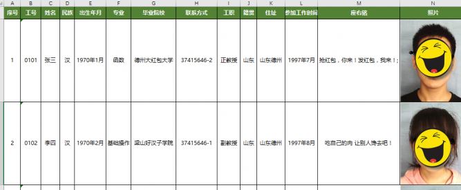 EXCEL制作員工檔案登記表的方法二: