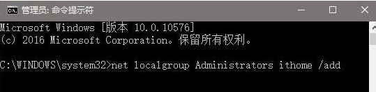 4、在管理員賬戶中,以管理員模式執(zhí)行如下命令:net localgroup Administrators 你的賬戶登錄名 /add