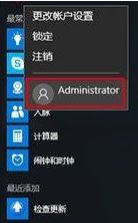 3、在開始菜單中點擊帳戶圖標,然后選擇Administrator, 切換至Administrator賬戶;