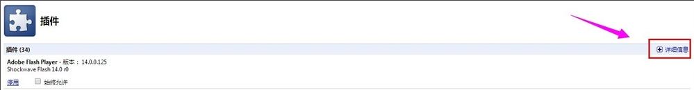 2、在UC插件設(shè)置界面找到Adobe Flash Player ,點(diǎn)擊右側(cè)的【詳細(xì)信息】,如圖: