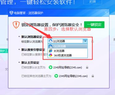 3、進(jìn)入“瀏覽器保護(hù)”功能設(shè)置界面我們就可以開始設(shè)置默認(rèn)瀏覽器;