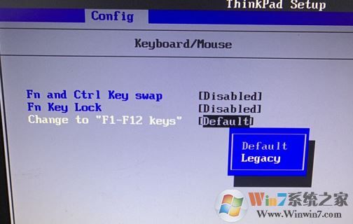 2、接著使用↓鍵移動(dòng)到Change to "F1-F12 keys",按下回車鍵,選擇【Legacy】;