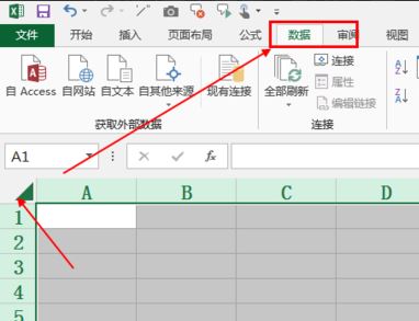 1、打開excel,選擇單元格,點擊“數(shù)據(jù)”功能,如圖: