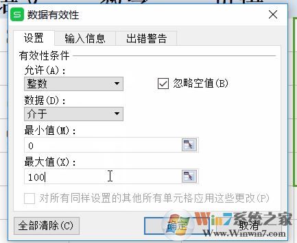 ②在“輸入信息”中輸入“該區(qū)域為生物成績,范圍為0-100”。