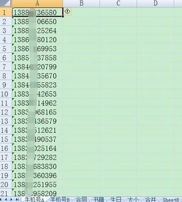 4、當(dāng)我們點(diǎn)擊“手機(jī)號(hào)A”這個(gè)單元格時(shí),就會(huì)跳轉(zhuǎn)到指定的“手機(jī)號(hào)A”這個(gè)sheet,如圖: