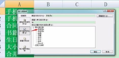 2、在超鏈接選項(xiàng)中,選擇【本文檔中的位置】,并在右邊【單元格引用】下選擇自己需要指定跳轉(zhuǎn)到的工作表,如圖: