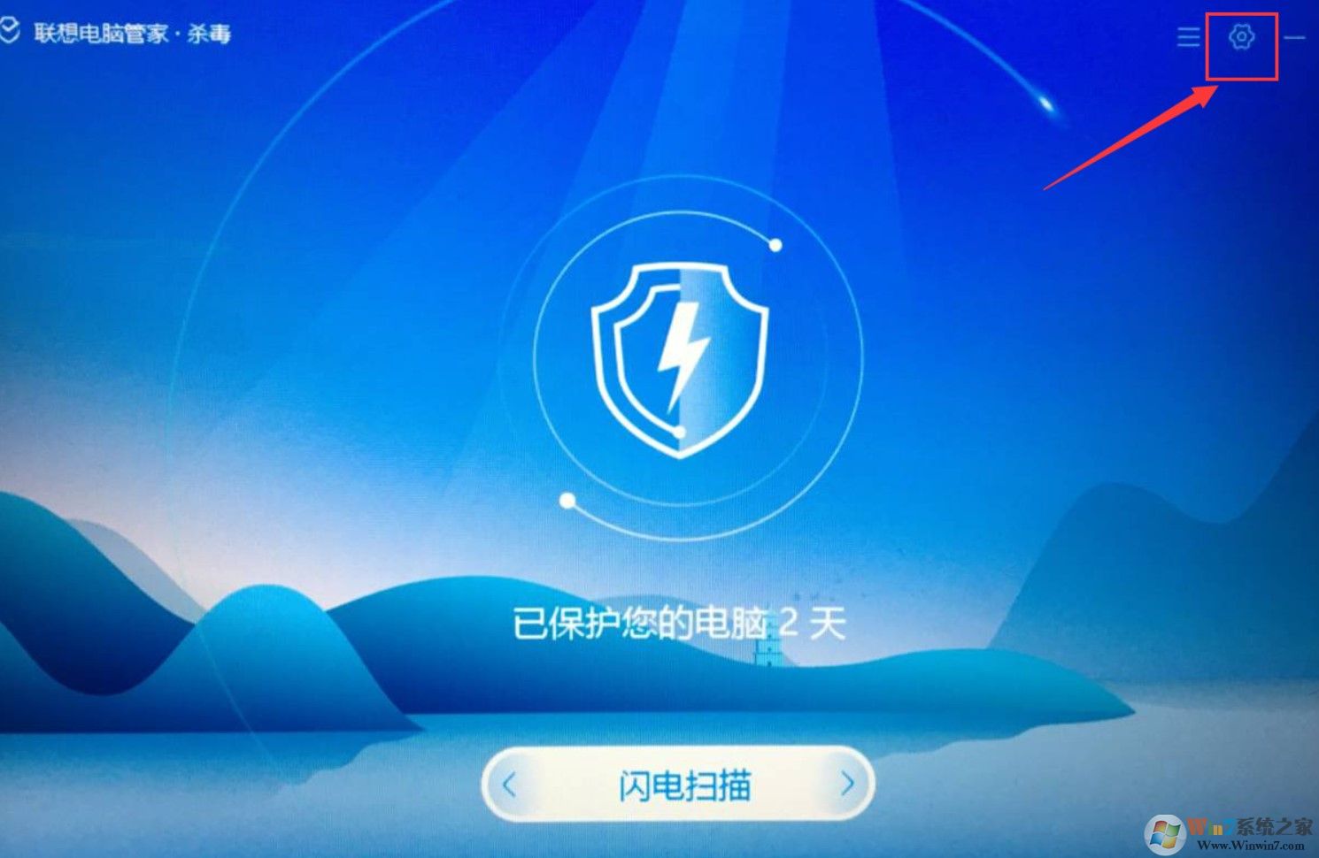 1、首先打開聯(lián)想殺毒主界面,點擊“設(shè)置”按鈕;