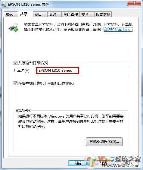3、打開設(shè)備和打印機,然后右鍵點擊你安裝的共享打印機,右鍵選擇打印屬性,得到共享名為EPSON L310 Series