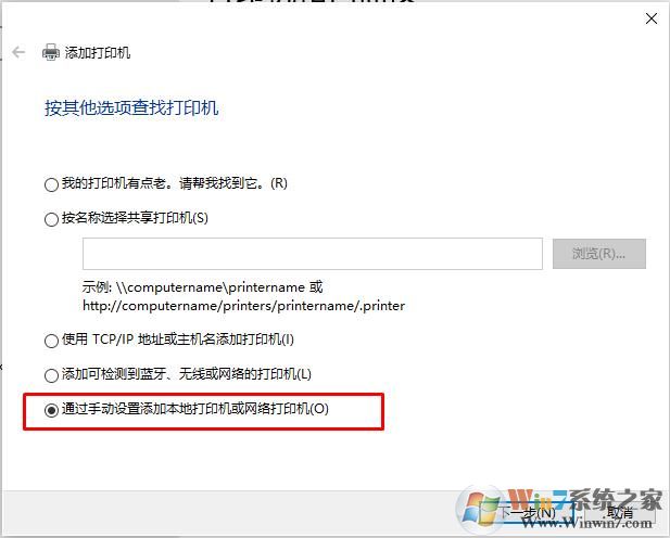 4、選擇手動設(shè)置添加本地打印機或網(wǎng)絡(luò)打印機;