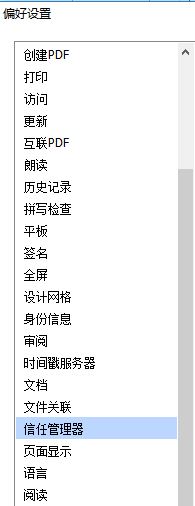 2、在偏好設(shè)置左側(cè)點(diǎn)擊【信任管理器】,如圖: