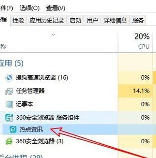 2、打開的 任務管理器窗口中找到熱點資訊相關的進程,如圖: