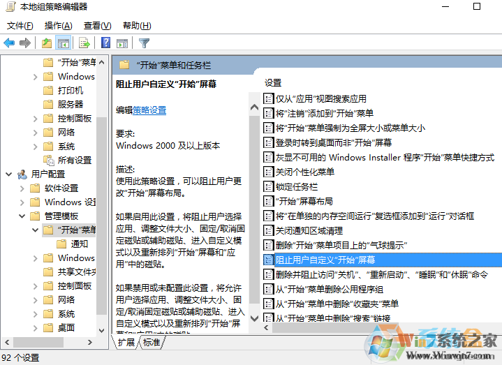 3、將“計(jì)算機(jī)配置”和“用戶配置”中的“開始屏幕布局”以及“阻止用戶自定義開始屏幕”項(xiàng)全部設(shè)置為“已啟用”即可。