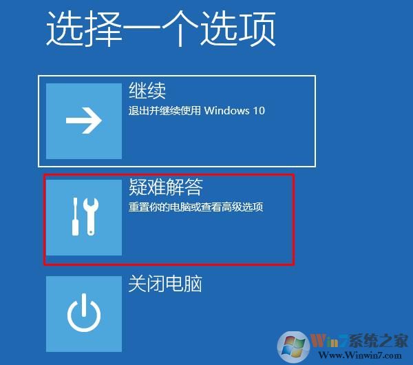 6、在選擇一個選項界面,選擇疑難解答選項進入;