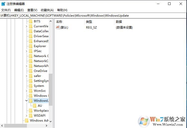4、然后定位到[HKEY_LOCAL_MACHINE\SOFTWARE\Policies\Microsoft\Windows\WindowsUpdate\AU]