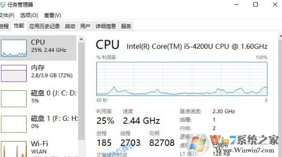 通過CPU查看的話是因?yàn)殚_始啟動(dòng)的一瞬間開始,意味著CPU就開始運(yùn)行了,所以我們通過查看CPU的運(yùn)行時(shí)間即可知道Windows10電腦的運(yùn)行時(shí)間。