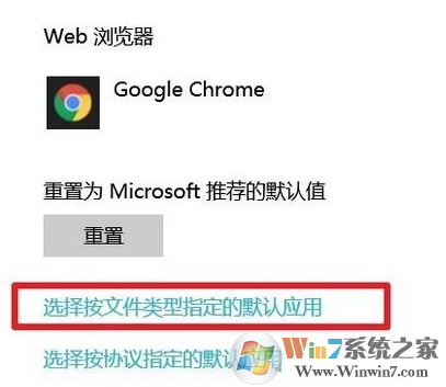 5、在右側(cè)拉到最下面,點(diǎn)擊“選擇按文件類型指定的默認(rèn)應(yīng)用”;