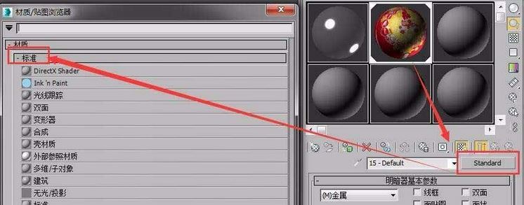3、材質(zhì)下的貼圖選擇項要選擇貼圖下的標準貼圖,如圖: