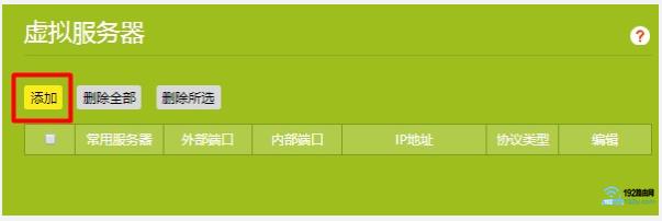 2、在“虛擬服務器”設置選項下,點擊:添加 按鈕,開始配置