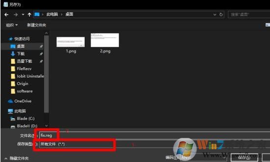 3.保存文件,選擇所有格式,文件名后綴必須要是【reg】。