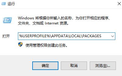 1、首先按“win+r”鍵,打開運行窗口,輸入“%USERPROFILE%\APPDATA\LOCAL\PACKAGES”,點擊“確定”,如圖: