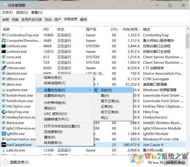 方法六、設(shè)置游戲進程CPU優(yōu)先級,如圖