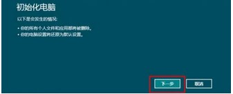 3、在彈出的“初始化電腦”彈窗里面點擊“下一步”。