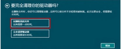 5、在接下來的“要完全清理你的驅(qū)動器嗎”這個彈窗里選擇“僅刪除我的文件”,當然也可以選擇“完全清理驅(qū)動器”,根據(jù)自己的要求而定。、