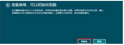 6、接下來就可以選擇“初始化”,選擇后就可以開始恢復過程,整個過程就不需要在操作了,等待電腦自動重啟回復后,對新的操作系統(tǒng)進行用戶名 網(wǎng)絡等設(shè)置就可以了,win7初始化電腦成功。