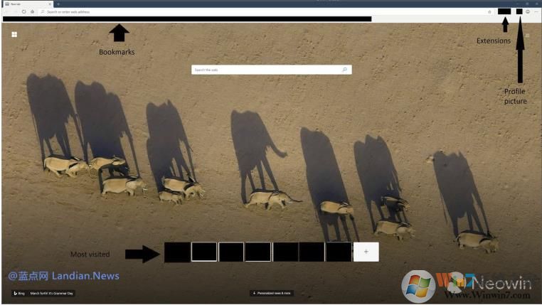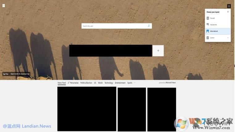 不過(guò)微軟也保留當(dāng)前版本Microsoft Edge中提供的信息流導(dǎo)航,同時(shí)瀏覽器背景也可以通過(guò)必應(yīng)搜索自定義。
