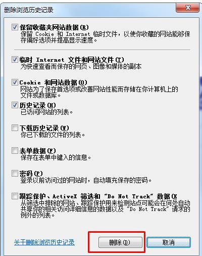 2、再點(diǎn)刪除瀏覽歷史記錄下的【刪除】按鈕;