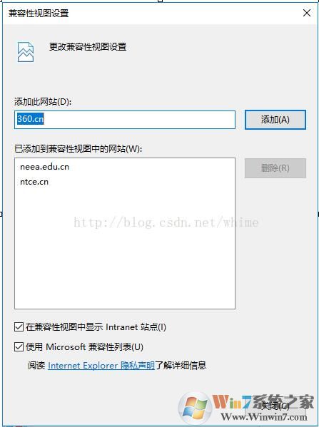 2、這 時(shí)出現(xiàn)在兼容性視圖設(shè)置,我們把需要操作的網(wǎng)站網(wǎng)址復(fù)制到下面的輸入框中就可以了,如輸入cncxm.com 點(diǎn)添加按鈕;