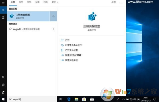 1、首先在搜索框搜索regedit 打開注冊表編輯器打開;