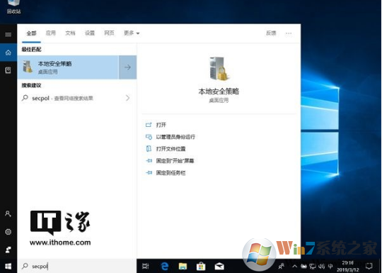 1、搜索“secpol”,或是先用gpedit.msc打開組策略都可以。