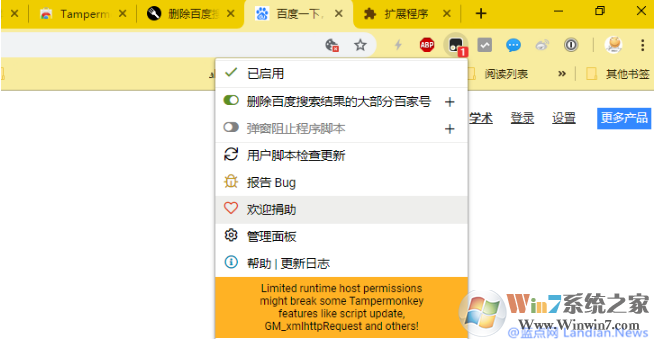 安裝后就可以繼續(xù)用來安裝各種第三方開發(fā)者們提供的定制腳本,如本文要使用的屏蔽百家號搜索結(jié)果腳本。