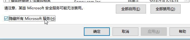 2、點(diǎn)擊”服務(wù)”標(biāo)簽卡,勾選”隱藏所有的 Microsoft 服務(wù)”,然后點(diǎn)擊全部禁用(若您啟用了指紋識(shí)別功能,請(qǐng)不要關(guān)閉相關(guān)服務(wù));