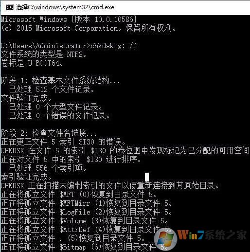 5、Win10會(huì)自動(dòng)檢查并修復(fù)u盤(pán)中的文件錯(cuò)誤。