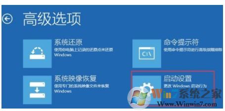 6、進(jìn)入高級選項(xiàng),里面有系統(tǒng)修復(fù)、啟動(dòng)修復(fù)、命令提示符、啟動(dòng)設(shè)置等,我們選擇“啟動(dòng)設(shè)置”點(diǎn)擊即可,如圖: