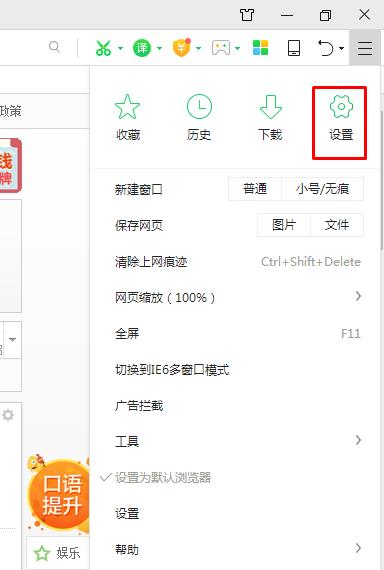 1、打開(kāi)360瀏覽器,點(diǎn)開(kāi)右上角的設(shè)置;